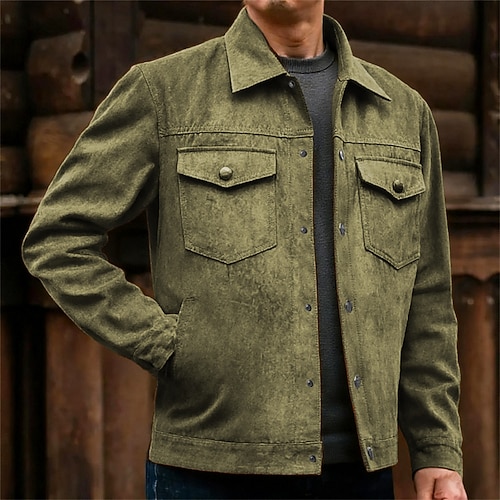 Per uomo Giacca Leggera Giacca Cargo Giacca Casual Giacca in finta pelle scamosciata Vacanza Quotidiano Tasca Primavera Autunno Semplice Moda Classico Bavero Regolare Nero Cachi Verde militare Giacca