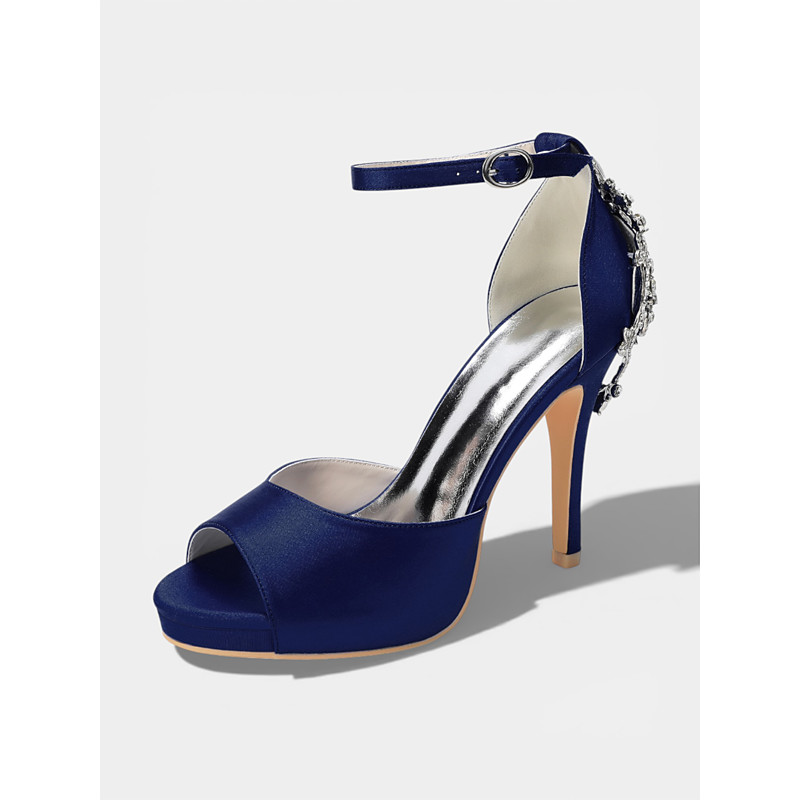 Women's Ivory Satin Ankle-Strap Stiletto Sandals with Crystal Back Detail, Elegant Bridal Heels for City Wedding Bride