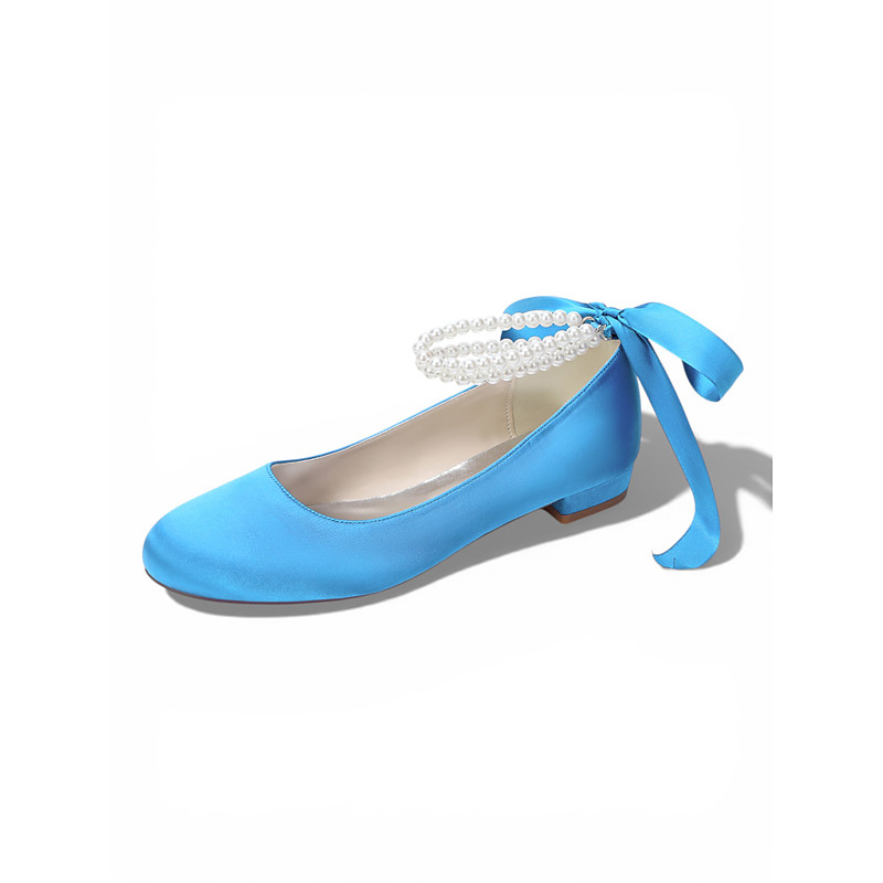 Women's Ivory Pearl Ankle Strap Flats, Elegant Ballet Bridal Shoes for Outdoor Garden Lawn Wedding