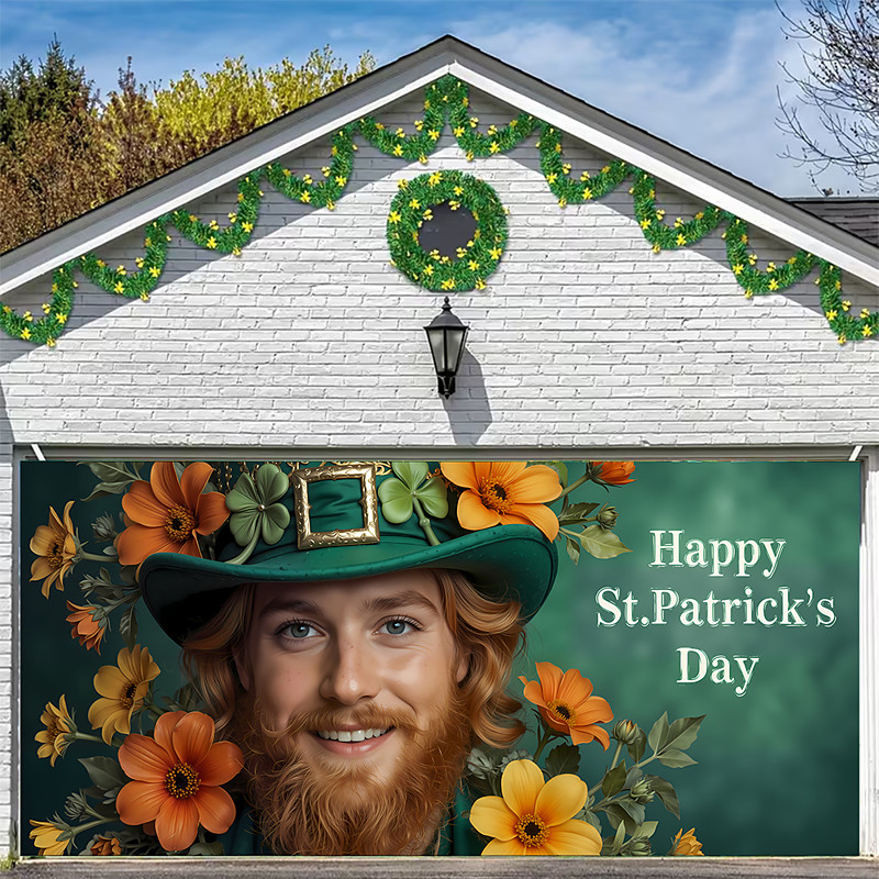 St. Patrick's Day Tapestry Garage Door Cover Large Hanging Backdrop Elf Cute 3D Party Outdoor Holiday Shooting Backgrounds Yard Home Decor