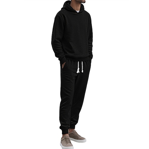 Per uomo Tuta da Ginnastica Set di abiti Set di felpe con cappuccio Felpa con Cappuccio All'aperto Quotidiano Sportivo Jacquard Coulisse Semplice Nero Bianco Cachi Poliestere Abbigliamento sportivo