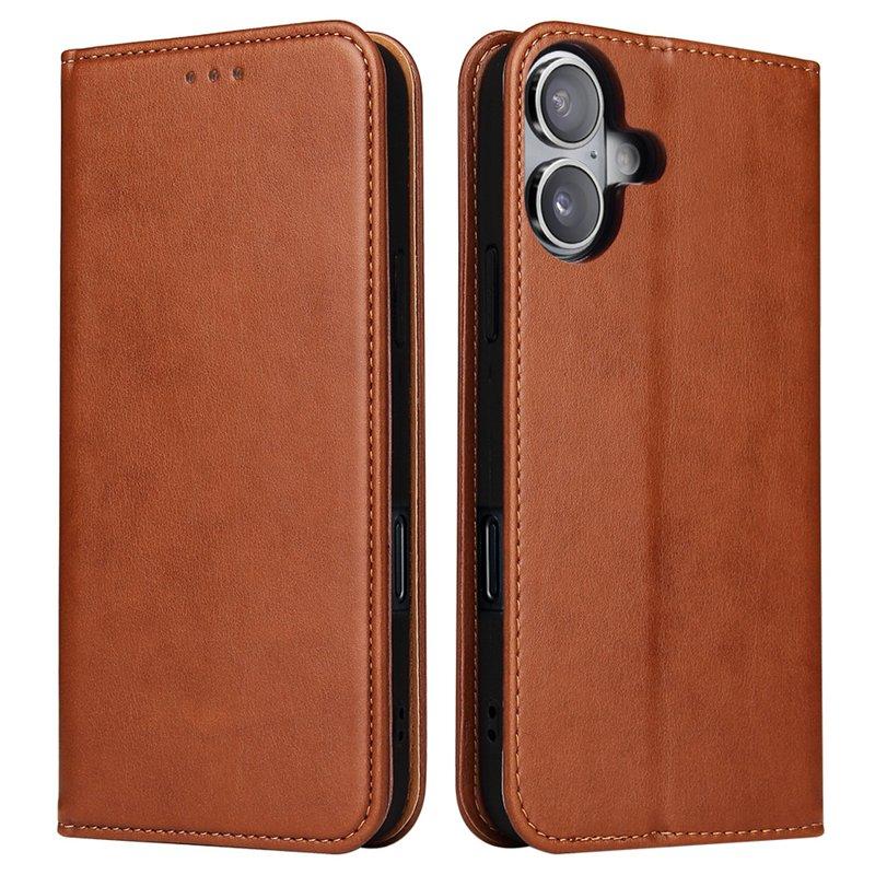 FIERRE SHANN för iPhone 16 Plus Plånboksfodral Konstläder - Brun