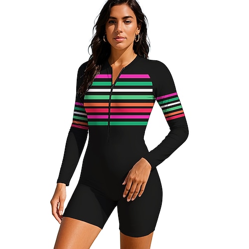 Per donna Muta da Immersione Rash Guard Costume da bagno Set di costumi da bagno A righe Geometria Protezione Solare UV UPF50 Ultra Leggero (UL) Manica Lunga Costume da Bagno Top sottomuta Con zip