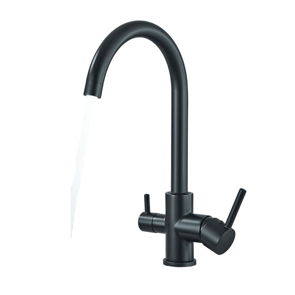 KLARWERK® Julie | 3-Wege Armatur Edelstahl Schwarz matt | Filter Trinkwasser Wasserhahn Küche | 360° Osmose Mischbatterie U-Auslauf 3 Anschlüsse