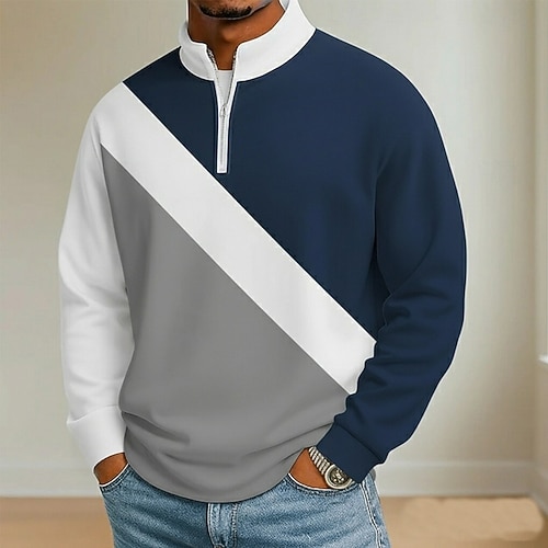 Per uomo Blocco di colori Geometrico Polo Manica Lunga Colletto Mao Casual Vacanza Athleisure Casual Quotidiano Stampa 3D Primavera Autunno Blu Nero Marrone