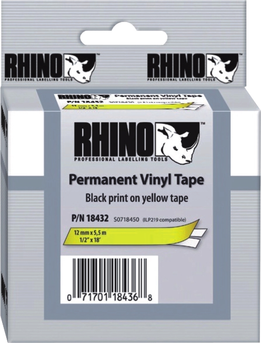DYMO Beschriftungsband für Rhino 12mm Vinyl schwarz auf gelb Packung mit 5 Stück