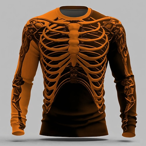 Halloween Herren 3D Skelett T Shirt Langarm T-Shirt 3D-Druck Rundhalsausschnitt Hemd Mode Übertrieben Straße Lässig Täglich Blau Orange Grün Sommer Frühling Herbst Bekleidung S M L XL XXL XXXL