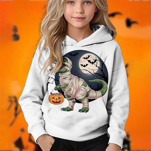 Halloween Mädchen 3D Kürbis Dinosaurier Kapuzensweatshirt Langarm Herbst Winter Mode Niedlich Basic Kinder 4-12 Jahre Mit Kapuze Outdoor Lässig Täglich Normale Passform