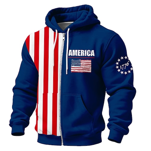 250° anniversario dell'America Per uomo Bandiera Americana Moda Cool Quotidiano Con Cappuccio Abbigliamento casual alla moda Vacanza Uscire Blu Blu 1 Coulisse Cerniera Autunno Inverno progettista S M