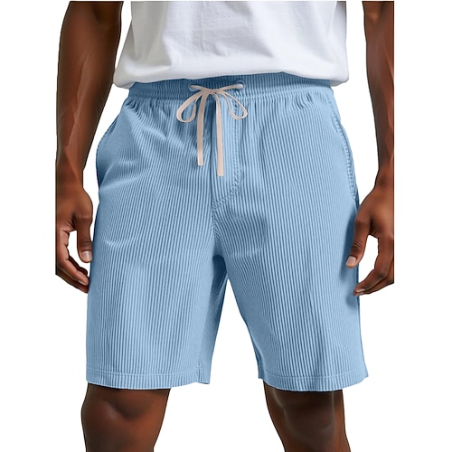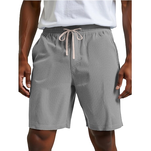 Per uomo Pantaloncini Estivi Shorts da Spiaggia Pantaloncini casual Pantaloncini di velluto a coste Coulisse Elastico in vita Tinta unica Comodità Lunghezza al ginocchio Quotidiano All'aperto Ferie