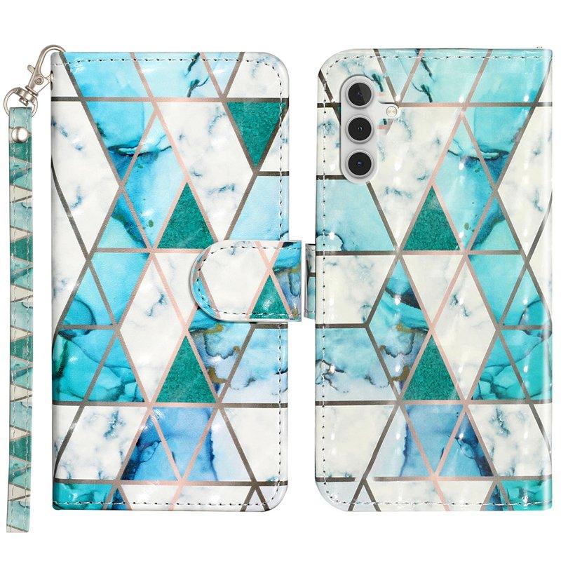 Samsung Galaxy A35 5G Fodral 3D Mönstertryck Äkta Läder - Grön Marmor