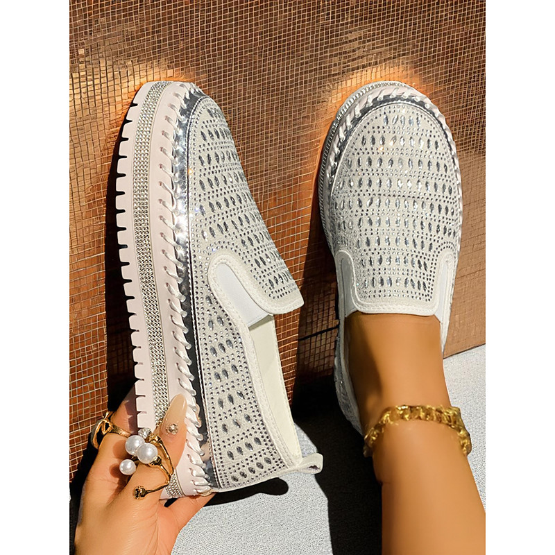 Women's Yellow Slip-On Sneakers with Rhinestone Detailing - Stylish Casual Shoes with Platform Sole, Perfect for Nightlife Parties and Special Occasions