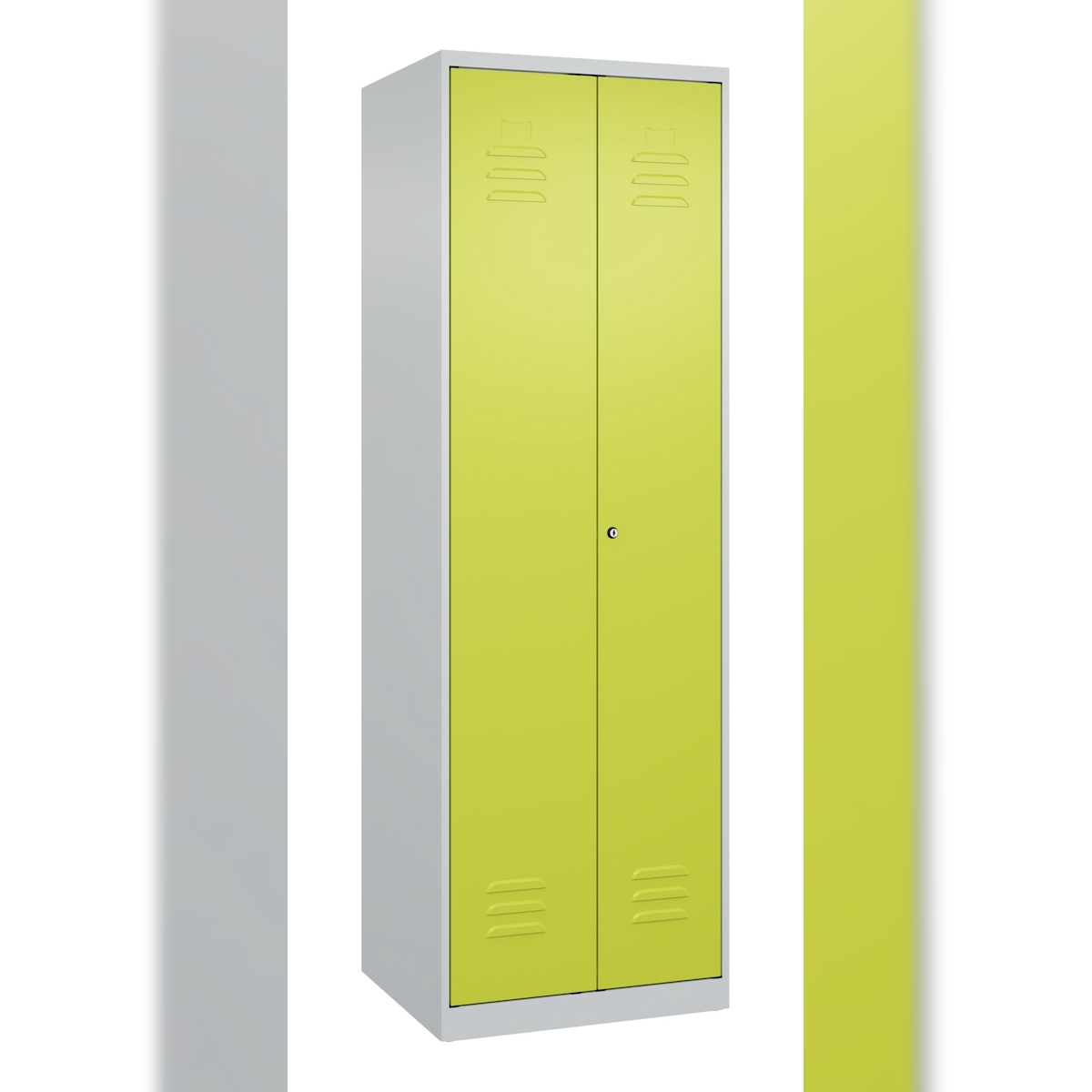 C+P Doppel-Spind Classic PLUS, 2 Abteile, HxBxT 185x60x50cm, Zylinderschloss, Hellgrau/Clowngrün von PROREGAL