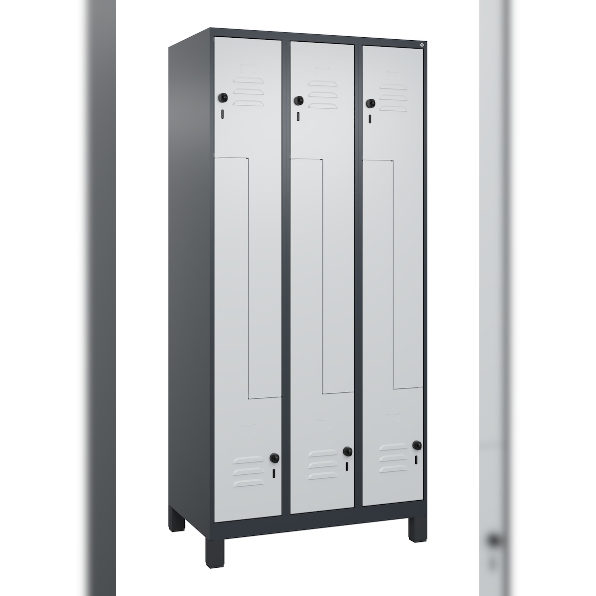 C+P Z-Spind Classic PLUS, Füßen, 6 Abteile, HxBxT 195x90x50cm, Sicherheitsdrehriegel, Anthrazit/Hellgrau von PROREGAL