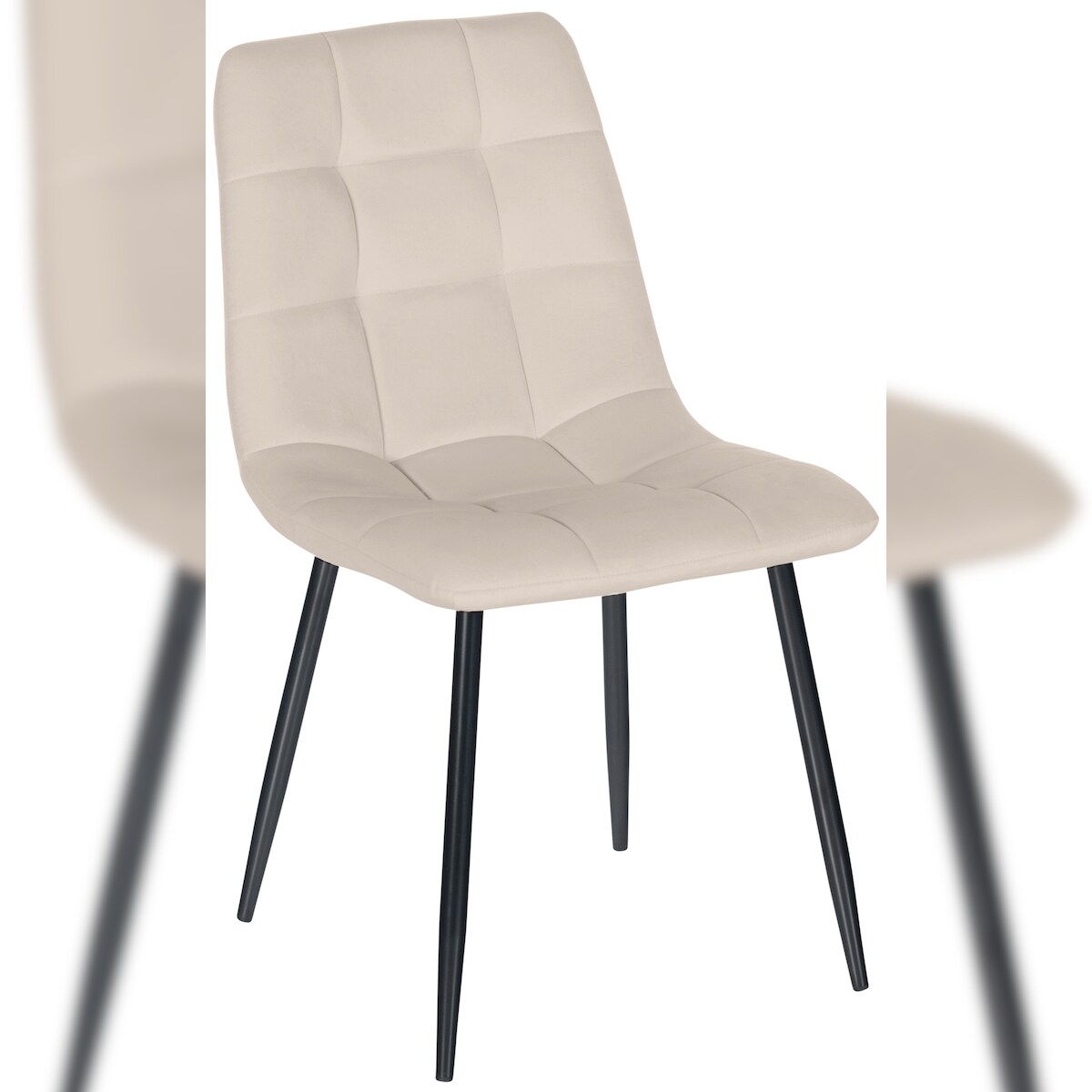 DELUKE® Esszimmerstuhl VOUL - Creme, Samt Gesteppter Polsterstuhl Küchenstuhl mit Bodenschonern Esszimmerstühle Stuhl Küche