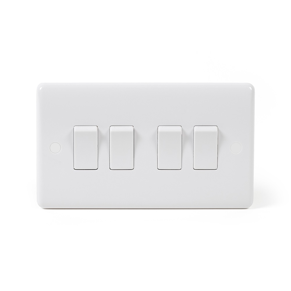 Lieber Silk White 4 Gang 2 Way 10A Light Switch - Curved Edge