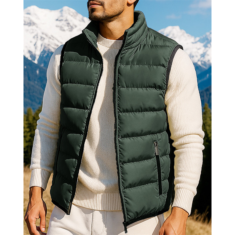 Men's Puffer Vest Vest Gilet Vacation Daily Date Fashion Casual Winter Pocket Polyester Warm Comfortable Solid Color Zipper Stand Collar Regular Fit Black Yellow Red Army Green Vest