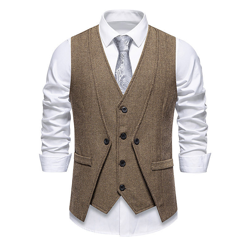 Men's Vest Waistcoat Gilet Vacation Party Business Fashion Casual Spring Fall Pocket 2 in 1 Buttons Polyester Comfortable Plain Single Breasted One-button V Neck Regular Fit Wine Navy Blue Dark Gray