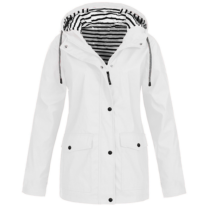 Women's Trench Coat Waterproof Rain Jackets Rain Coats Waterproof Windproof Zipper Pocket Fashion Outdoor Plain Going out Weekend Zipper Regular Hooded Regular Fit Long Sleeve Outerwear Black White