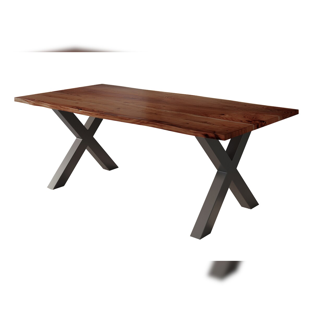 Möbelliebling Esstisch Baumkante massiv Akazie nussbaum 200 x 100 schwarz X-Gestell NICK