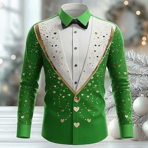 San Valentino Per uomo Romantico A cuore Colletto finto e design del vestito Camicia Camicia con Bottoni Manica Lunga Moda Casual Regalo Ferie Primavera Autunno Collo ripiegato Stampa 3D camicie con