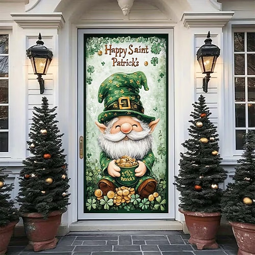 Festa di San Patrizio Poster Copertura della porta Banner per esterni Elfo Cappello verde Trifoglio Carino 3D Da serata Dormitorio Stanza per adolescenti Dormitorio universitario Ragazzi Man Cave