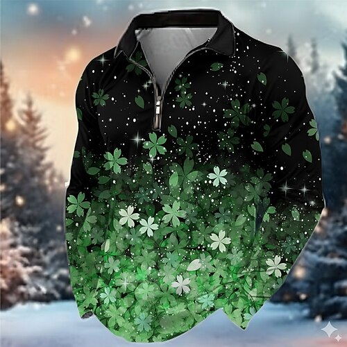 San Patrizio Per uomo Quadrifoglio Polo Manica Lunga Collo ripiegato Casual Ferie Casual Quotidiano Festival Cerniera Stampa 3D Primavera Autunno Verde