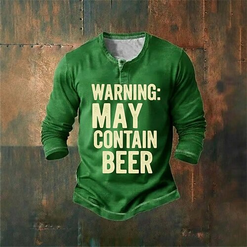San Patrizio Per uomo Grafico Citazioni Detti Maglietta Maglia Henley Camicia a Maniche Lunghe Manica Lunga maglietta Stampa 3D Henley Camicia Moda Essenziale Classico Quotidiano Vacanza Giorno di