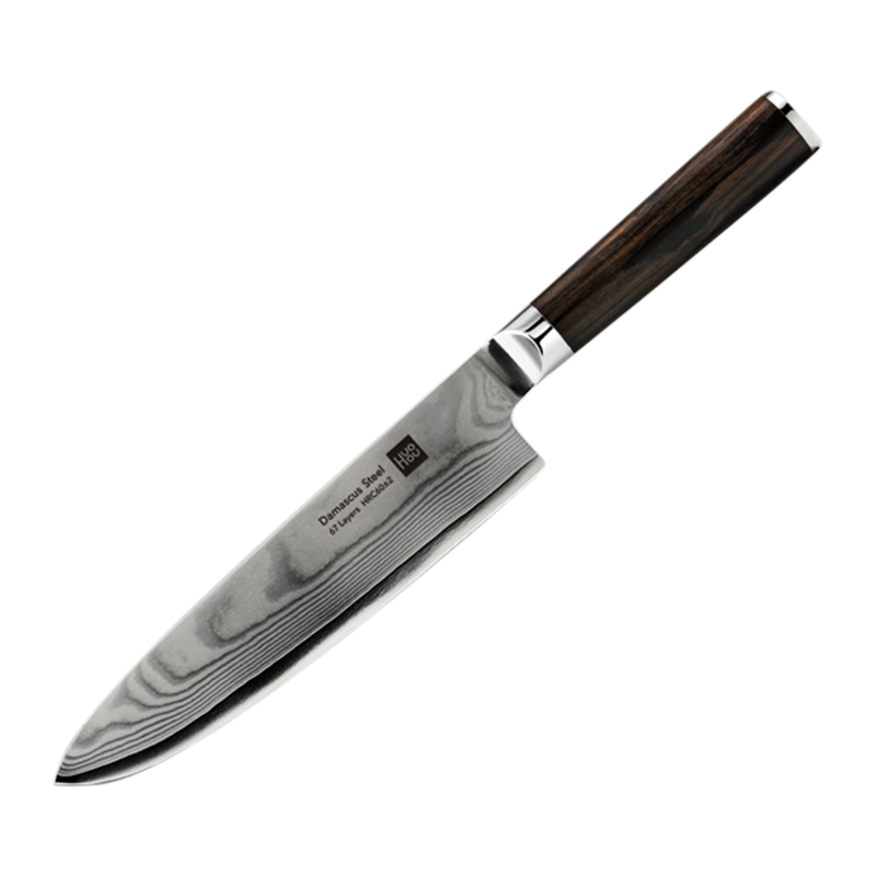 HuoHou Couteau de Damas en acier damassé 67 couches avec manche en bois d’ébène