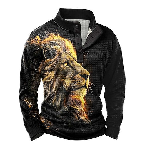 Per uomo Leone Nido d'ape Felpa Quotidiano Classico Casual Collo alla coreana All'aperto Casa Lavoro Regalo Nero Bottoni Autunno Inverno progettista S M L XL XXL XXXL