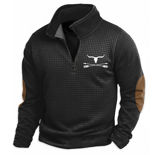 Per uomo Mucca Felpa Quotidiano Classico Casual Cowboy Western Collo alla coreana Zip a un quarto All'aperto Casa Ufficio Lavoro Nero Blu Marrone Verde militare Grigio Con zip Autunno Inverno