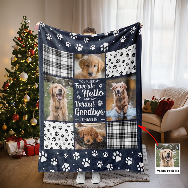 Custom Photo Blanket - Personalized Christmas Memorial Sympathy Gifts For Dogs Cats - You Were My Favorite Hello And My Hardest Goodbye