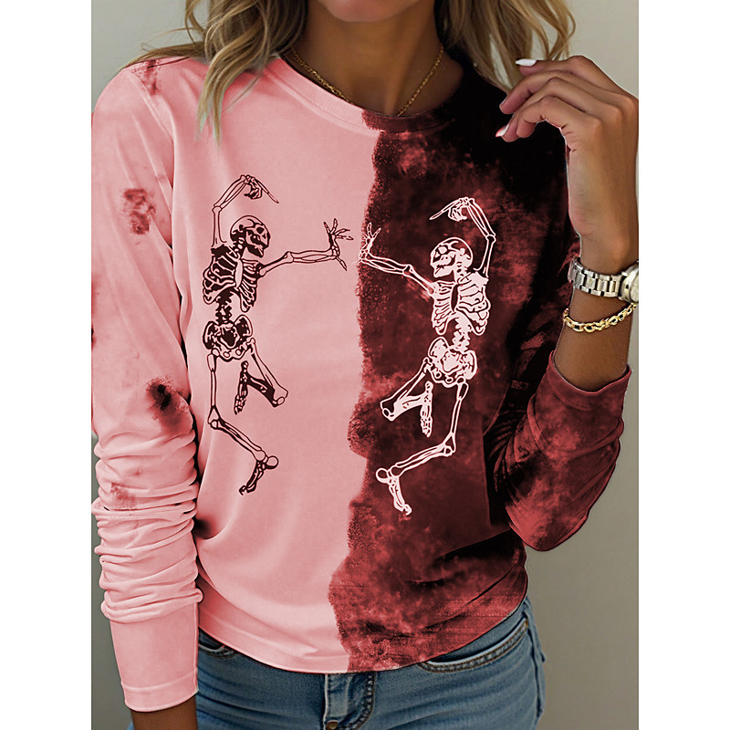 Women's T Shirt Skulls Graphic Vintage Fashion Casual Long Sleeve Crew Neck Regular Tops Daily Weekend Print Red Blue Purple Green Gray Fall Winter