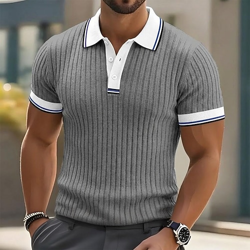 Per uomo Testurizzato Maglia da golf Casuale Lavoro Colletto Polo a Coste Classico Manica Corta Essenziale Moderno Blocco di colori A coste Estate Primavera Primavera Estate Bianco Giallo Rosa
