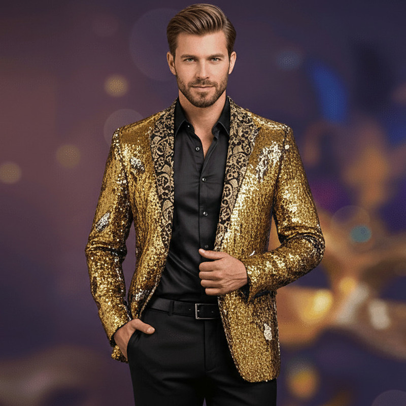 Disco Blazer 1980s 2 Colors Shiny Sequin Tuxedo Slim Fit Lapel Collar Suits Carnival Costume Men's Adults' Halloween Carnival Wedding Party Club Tuxedo