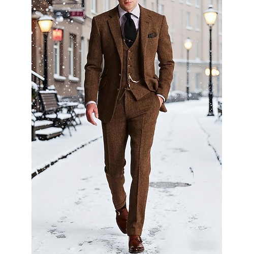 Herren Blazer Weste Anzughose Blazer Geschäft Arbeit Hochzeit Mode Streetwear Herbst Winter Terylen Einfarbig 3 Teile Einreihig Blazer Schwarz Champagner Rosa Burgunderrot