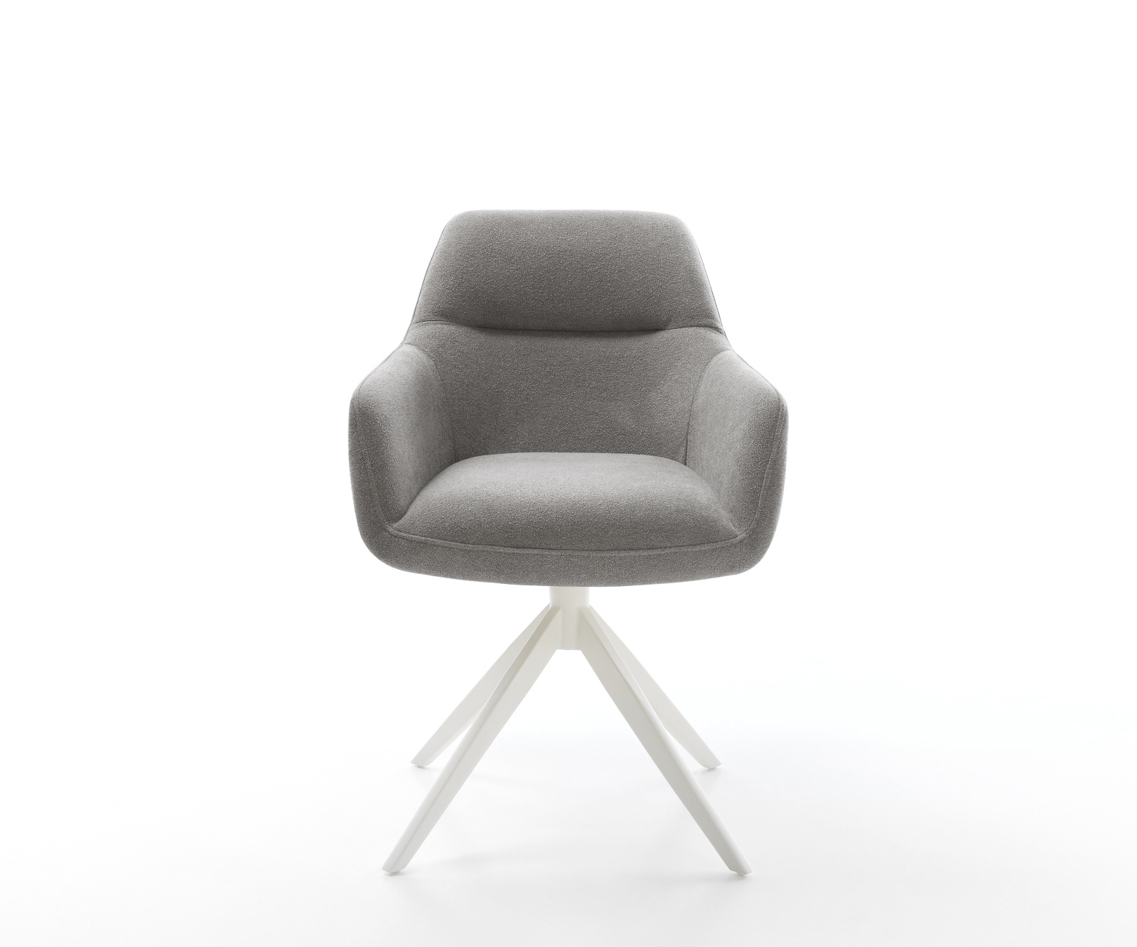 DELIFE Draaistoel Nube-Flex met armleuning bouclé wit kruisframe breed grafiet 360° draaibaar rocker-functie pocketveer kern