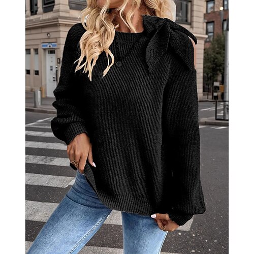Per donna Felpa Cardigan Streetwear Casual Tinta unica Girocollo Lavorato a maglia Manica Lunga Top Regolari Maglia Quotidiano Ferie Uscire Nero Cachi Autunno Inverno
