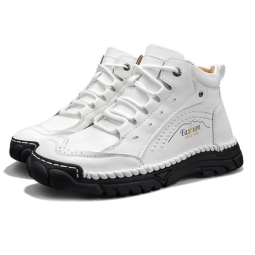 stivali casual bianchi da uomo fatti a mano con design allacciato, suola antiscivolo e comfort leggero, stivali streetwear eleganti per l'uso quotidiano e i viaggi
