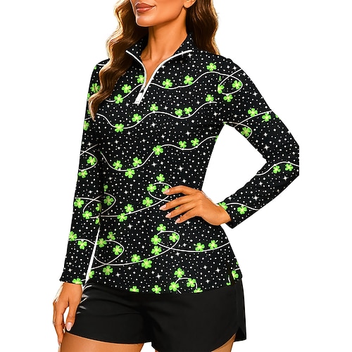 San Patrizio Per donna Unisex Trifoglio Maglia Felpa Polo Top Maglietta Manica Lunga Stampato Zip a un quarto Pullover UPF50 Resistente ai Raggi UV Elastico Traspirante Pallavolo Tennis Golf Collo