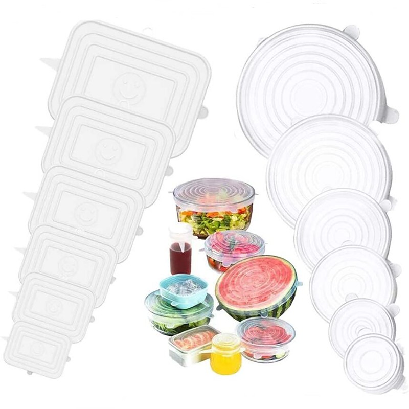 6PCS/12PCS Silicone Stretch Lids Kitchen Tools Accessories Reusable Silicone Adjustable for Fruit Vegetable Bowl Covers Containers Free Keeping Food Fresh