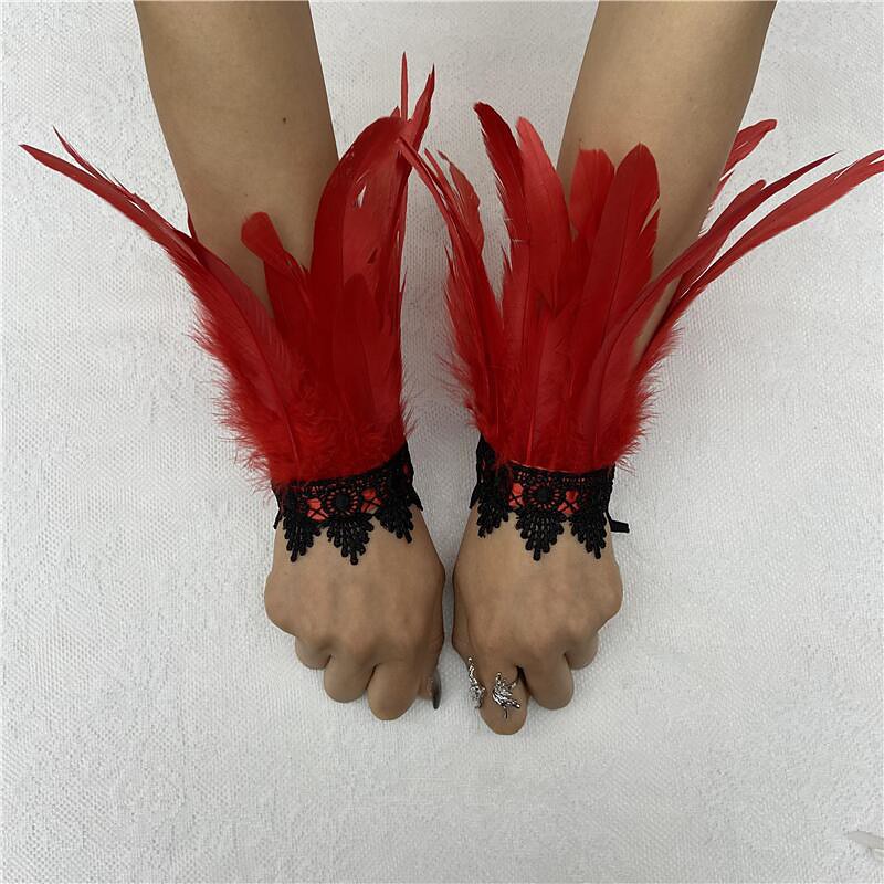 Accessori Samba del Carnevale 2026 Rio Carnevale Guanti in Pizzo di Piume Gotici per Donne Lunghi Guanti Senza Dita in Rete con Piume Naturali Costume per Performance al Festival del Brasile