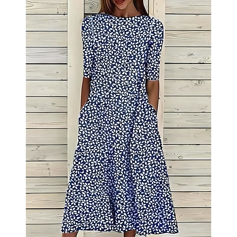 Women's Midi Dress Floral Pocket Print Crew Neck Daily Date Short Sleeve Summer Spring