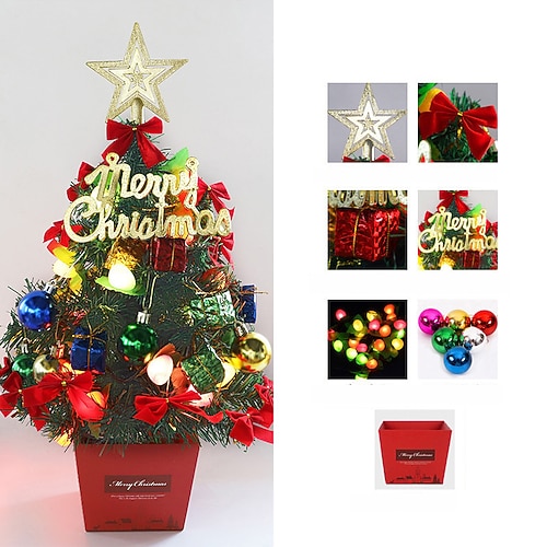 mini diy weihnachtsbaumschmuck 50-60 cm desktop weihnachtsbaumschmuck xtmas baumschmuck mit lichtern gold rot anzug schmücken weihnachtslichter