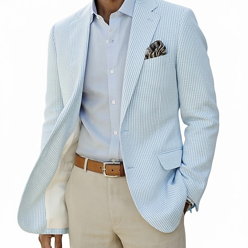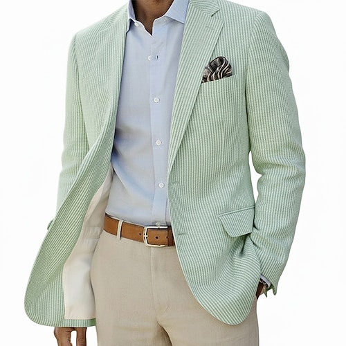 Per uomo Giacca blazer Colletto ad incastro Leggero Casual A righe Blazer in seersucker Rosa Azzurro cielo Verde salvia Vestibilità su misura Monopetto Due Bottoni