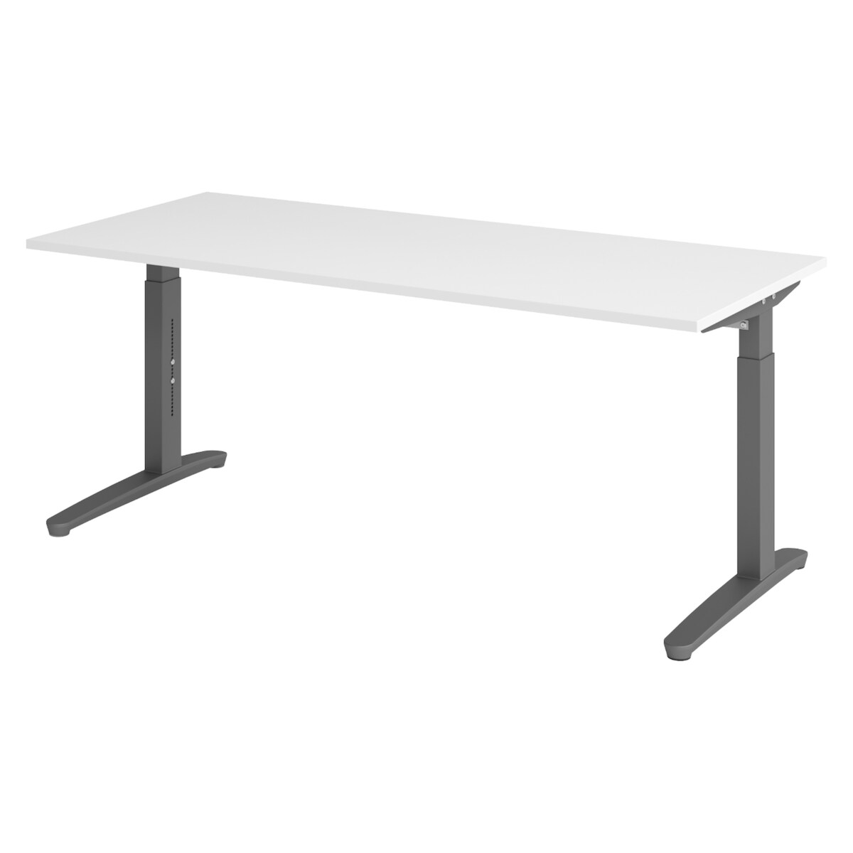bümö manuell höhenverstellbarer Schreibtisch 180x80 in weiß, Gestell in graphit - PC Tisch höhenverstellbar & groß, höhenverstellbarer Tisch Büro,