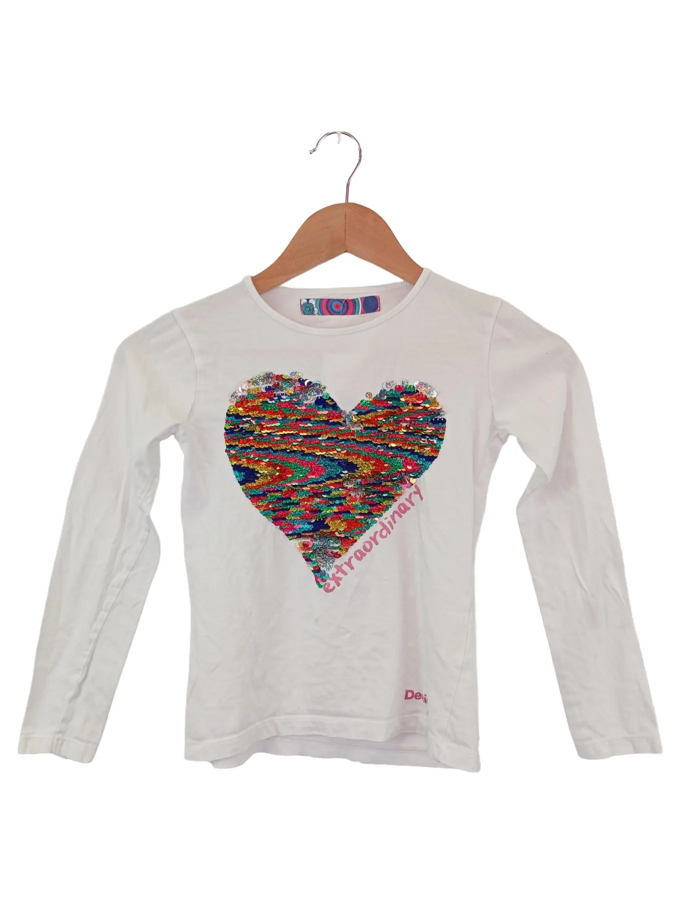 DESIGUAL Kinder Langarmshirt Weiß Herz Gr. 134/140