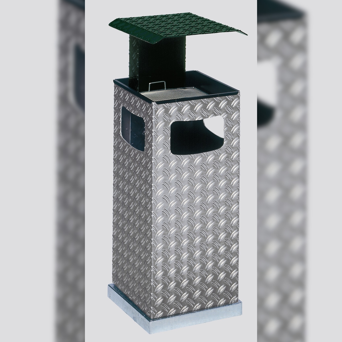 PROREGAL Kombiascher mit 3-Fach Einwurf | 38 Liter, HxBxT 95x44x44cm | Aluminium-Duett-Blech | Dach Grün | Mülleimer Aschenbecher Abfalleimer