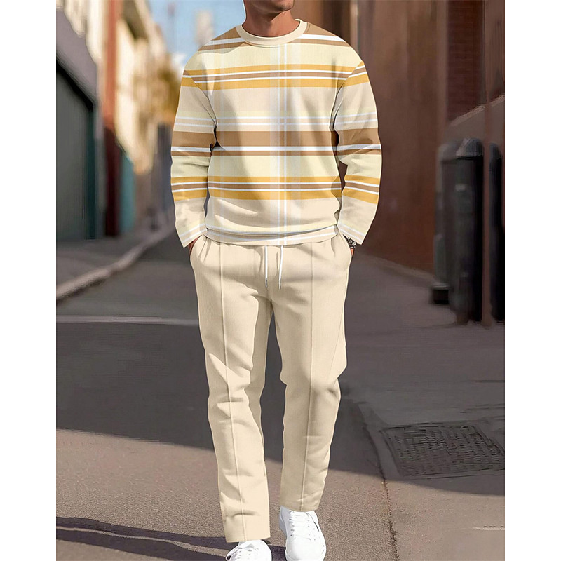 Men's 2-Piece Color Block Tracksuit - Casual Crew Neck Sweatshirt Jogger Set for Sports Streetwear Daily Wear
