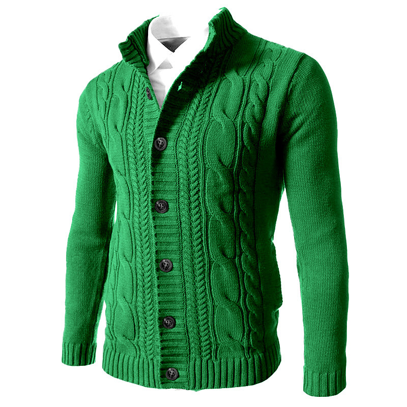 Male Cardigan Cable Knit Regular Knitting Solid / Plain Color Shawl Collar New Year's events Clothing Apparel Winter Autumn / Fall Black Blue S M L